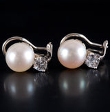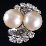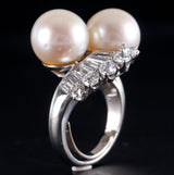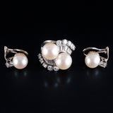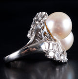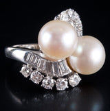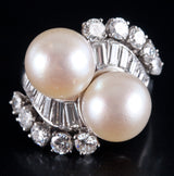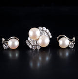 Vintage 1940s Platinum G VS2 Diamond Pearl Cocktail Ring Earring Set 2.60ctw 18g