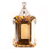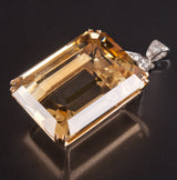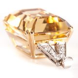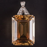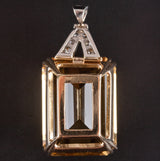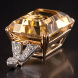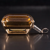 Vintage 1950's 14k Yellow Gold Platinum Citrine Diamond Pendant 46.07ctw 16.2g