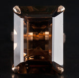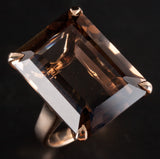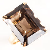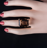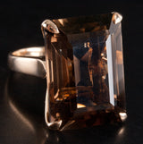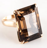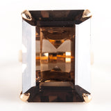 18k Yellow Gold Emerald Shaped Smoky Quartz Solitaire Cocktail Ring 16.51ct