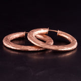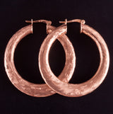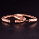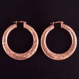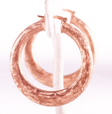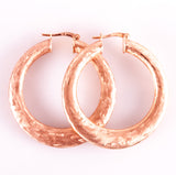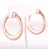 10k Rose Gold Hollow Hoop Hammered Finish Style Earrings W/ Saddlebacks 3.23g