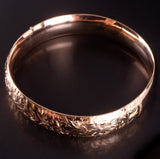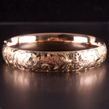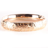 14k Rose Gold Etched Style Hollow Hinged Bangle Bracelet 19.4g 7.25" Length