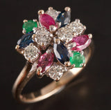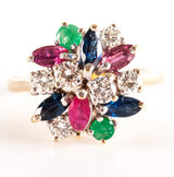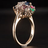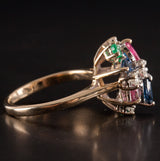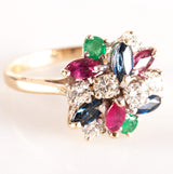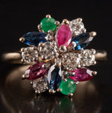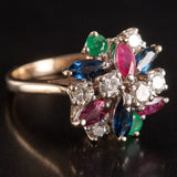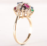 14k Yellow Gold Diamond Sapphire Emerald Ruby Cocktail Ring 1.48ctw 4.0g