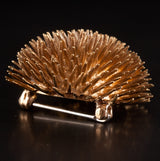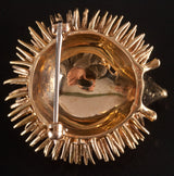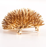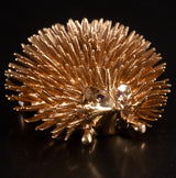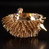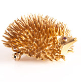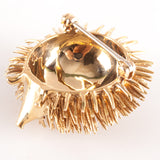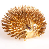 Vintage 1970's 17k Yellow Gold Round Ruby Hedgehog Style Brooch Pin .02ctw 16.4g