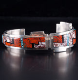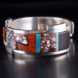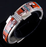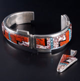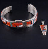 Sterling Silver Duran Gasper Zuni Inlay Multi-Stone Bracelet Pendant Set 54.5g
