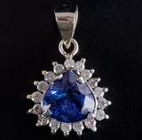 10k White Gold Trillion AA Tanzanite Round Diamond Halo Style Pendant 4.48ctw 4g