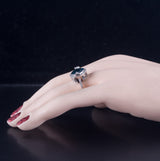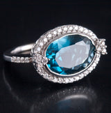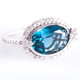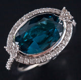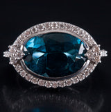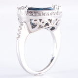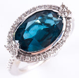 14k White Gold Oval London Blue Topaz Diamond Halo Ring 6.93ctw 7.33g