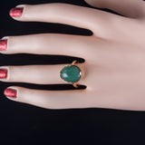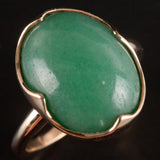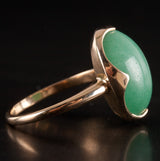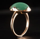 Vintage 1960's 13k Yellow Gold Oval Cabochon Jade Solitaire Ring 9.56ct 4.45g
