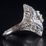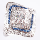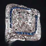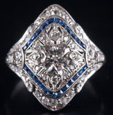 Vintage 1920's Platinum Transitional Diamond Sapphire Engagement Ring 1.26ctw