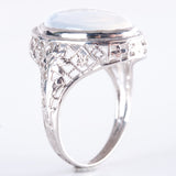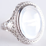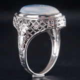 Vintage 1930's 14k White Gold Oval Cabochon Moonstone Solitaire Ring 2.48g