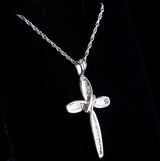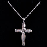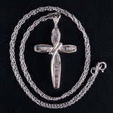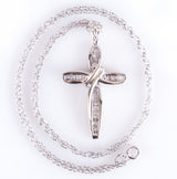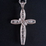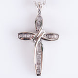 10k White Gold Baguette Diamond Cross Pendant W/ 16" Chain .426ctw 2.81g