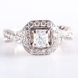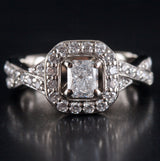 14k White Gold Radiant Diamond Halo Style Engagement Ring .51ctw 3.40g