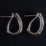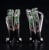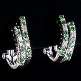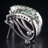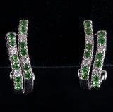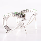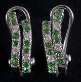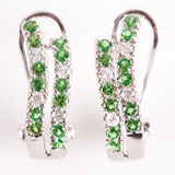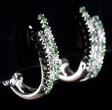 14k White Gold Tsavorite Garnet Diamond Huggie Earrings W/ Omega Backs .56ctw