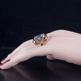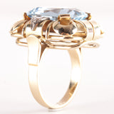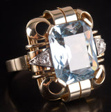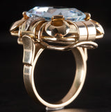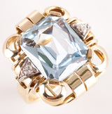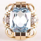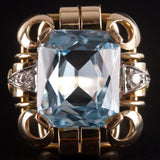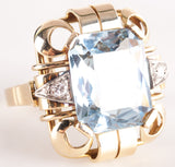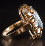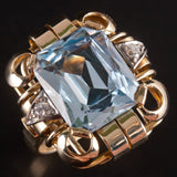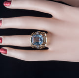 1950's 14k Yellow White Gold Aquamarine Solitaire Ring W/ Diamond Accents 7.3ctw