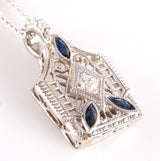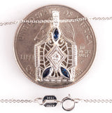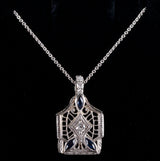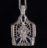 Vintage 1930's 14k White Gold Lab-Created Sapphire Natural Diamond Necklace