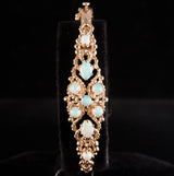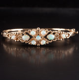 12k Yellow Gold Oval Cabochon AA Opal Hinged Bangle Bracelet 1.37ctw 18.9g