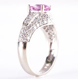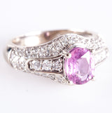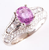 14k White Yellow Gold Oval Pink Sapphire Diamond Cocktail Ring 1.94ctw 6.21g