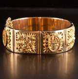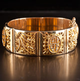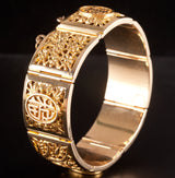 14k Yellow Gold Chinse Character Large Heavy Style Bracelet 67.45g 7" Length