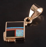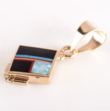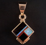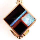 14k Yellow Gold Knifewing Segura Opal Onyx Coral Pendant 5.52g 36.4mm x 18.7mm