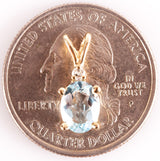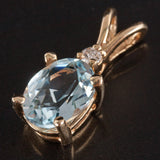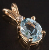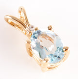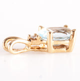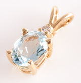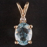 14k Yellow Gold Oval Aquamarine Solitaire Pendant W/ Diamond Accent 1.13ctw