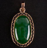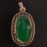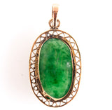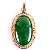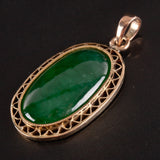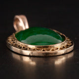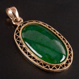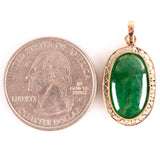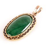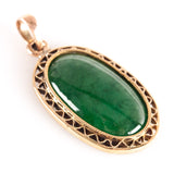 14k Yellow Gold Oval Cabochon Jade Solitaire Pendant 26.5mm x 18.9mm 2.5g