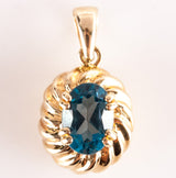 14k Yellow Gold Oval London Blue AA Topaz Solitaire Pendant 1.05ctw 1.82g