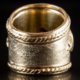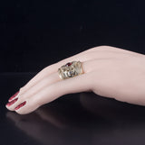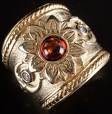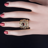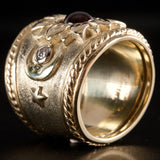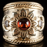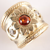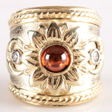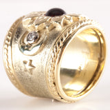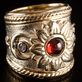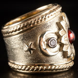 14k Yellow Gold Round Cabochon Garnet Diamond Sun Moon Ring 1.05ctw 27.0g