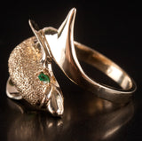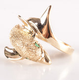 14k Yellow Gold Round Emerald Dolphin Style Ring .12ctw 4.38g