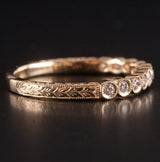 14k Yellow Gold Round H SI1 Diamond Etched Style Wedding Ring .176ctw 2.0g