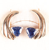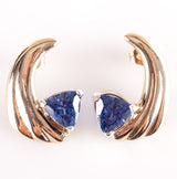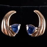 14k Yellow Gold Sterling Silver Trillion AA Tanzanite Solitaire Earrings 3.34ctw