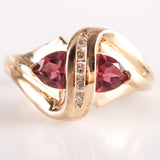 14k Yellow Gold Trillion Pink Tourmaline Diamond Cocktail Ring .85ctw 4.82g