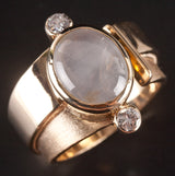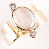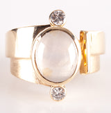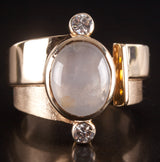 17k Yellow Gold Oval Cabochon Moonstone Diamond Cocktail Ring 4.14ctw 15.05g