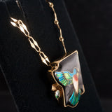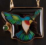 18k Yellow Gold AA Tsavorite Garnet Enamel Hummingbird Necklace W/ 19.5" Chain