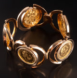 18k Yellow Gold Austria One Ducat 1915 Gold Coins Hinged Style Bracelet 60.9g