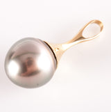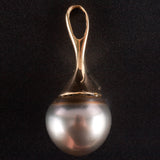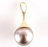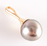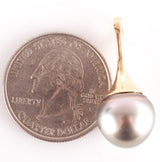 18k Yellow Gold Cultured Round Bead Tahitian Pearl Dangle Pendant 3.93g