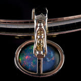 18k Yellow Gold Lightening Ridge Black Opal & Diamond Pendant W/ 14k Omega Chain