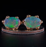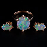 18k Yellow Gold Oval Cabochon Cut "AAA" Opal Solitaire Ring & Earring Set 5.3ctw