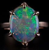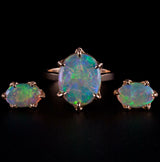 Do you have someone in your life who has an October birthday? This 18k yellow gold opal ring and earring set would make a great gift! With 'AAA' quality opal, which is the best, the earrings and ring are sure to make anyone smile. Give the gift of stunning opals.