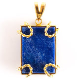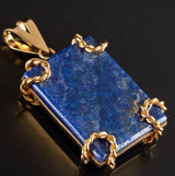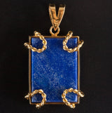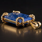 18k Yellow Gold Rectangle AA Lapis Lazuli Reversible Style Pendant 7.10g