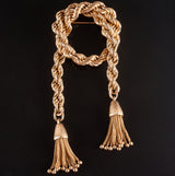 Vintage 1950's 14k Yellow Gold Rope Chain Tassel Style Brooch 21.15g