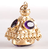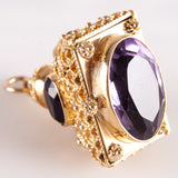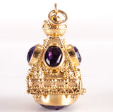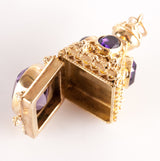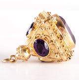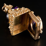 Vintage 1950's 18k Yellow Gold Amethyst Poison / Perfume Holder Pendant 17.95ctw