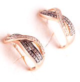 10k Rose Yellow Gold Round Top Light Brown Diamond Huggie Earrings .47ctw 4.96g