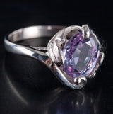 10k White Gold Lab-Created Alexandrite Solitaire Vintage Inspired Ring 2.52ct