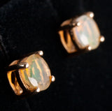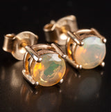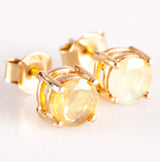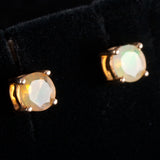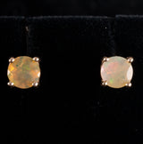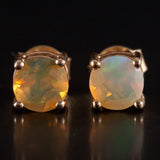 10k Yellow Gold Round Orange Jelly Opal Solitaire Stud Earrings .68ctw 1.6g
