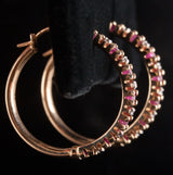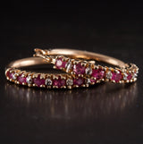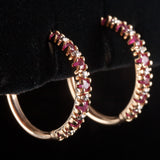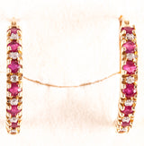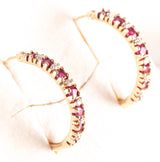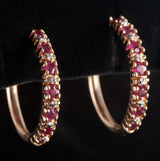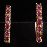 10k Yellow Gold Round Ruby Diamond Hoop Style Earrings 1.55ctw 3.25g