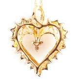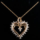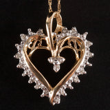 10k Yellow White Gold Round Diamond Two-Tone Heart Style Necklace .0425ctw