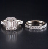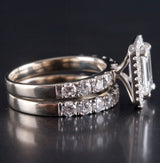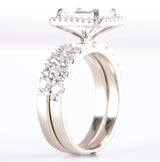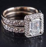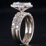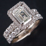 14k White Gold Diamond Halo Engagement Wedding Ring Set W/ GIA Cert 3.23ctw