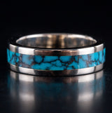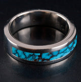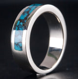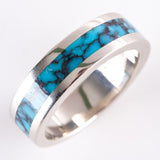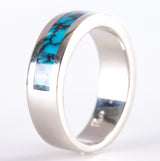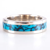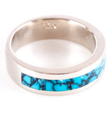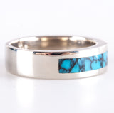 14k White Gold Inlay Style Blue Turquoise Ring 6.4g Size 5.75