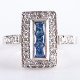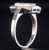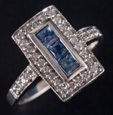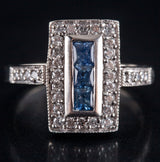 14k White Gold Princess Sapphire & Round Diamond Cocktail Ring .95ctw 4.18g