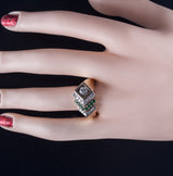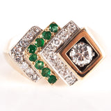 14k Yellow Gold Round Diamond Emerald Cocktail Style Ring .89ctw 12.28g