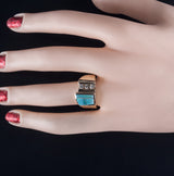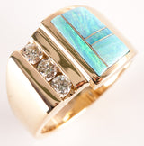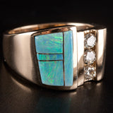 14k Yellow Gold AA Inlay Opal Round Diamond Cocktail Style Ring .36ctw 8.69g